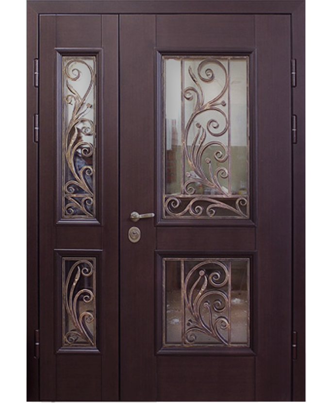 Дверь двустворчатая со стеклом и ковкой ДВ-2220