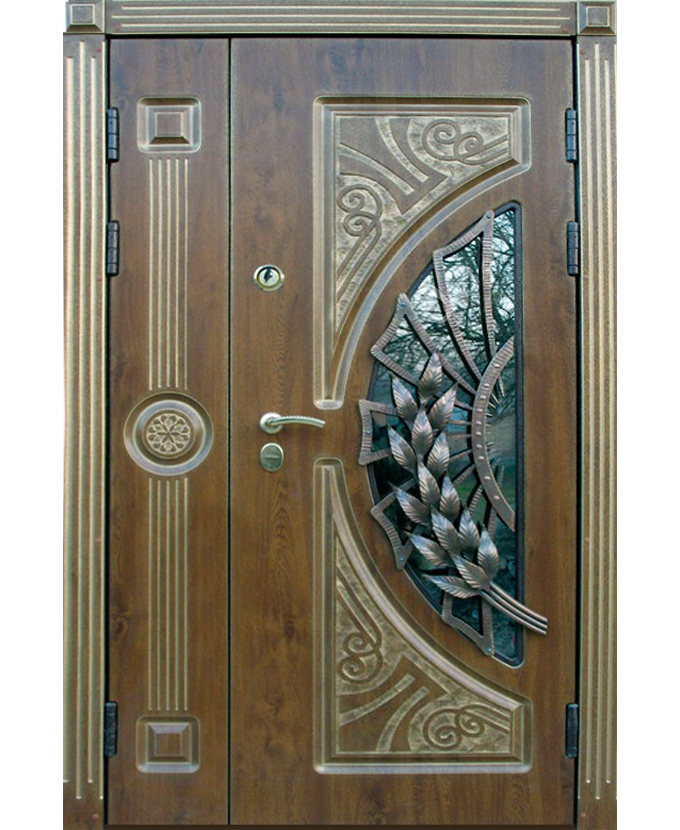 Дверь двустворчатая со стеклом и ковкой ДВ-2221