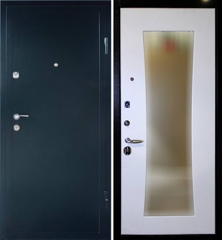 Металлическая дверь с зеркалом и порошковым напылением. СП-1946