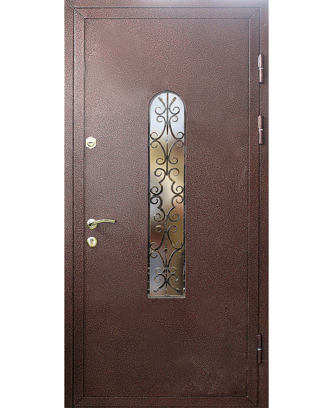 Металлическая дверь порошковое напыление с 2-х сторон со стеклом и ковка. СП-2280